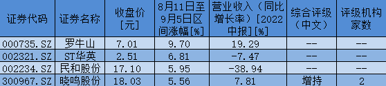 表:8月11日至9月5日,4只雞蛋股行情一覽