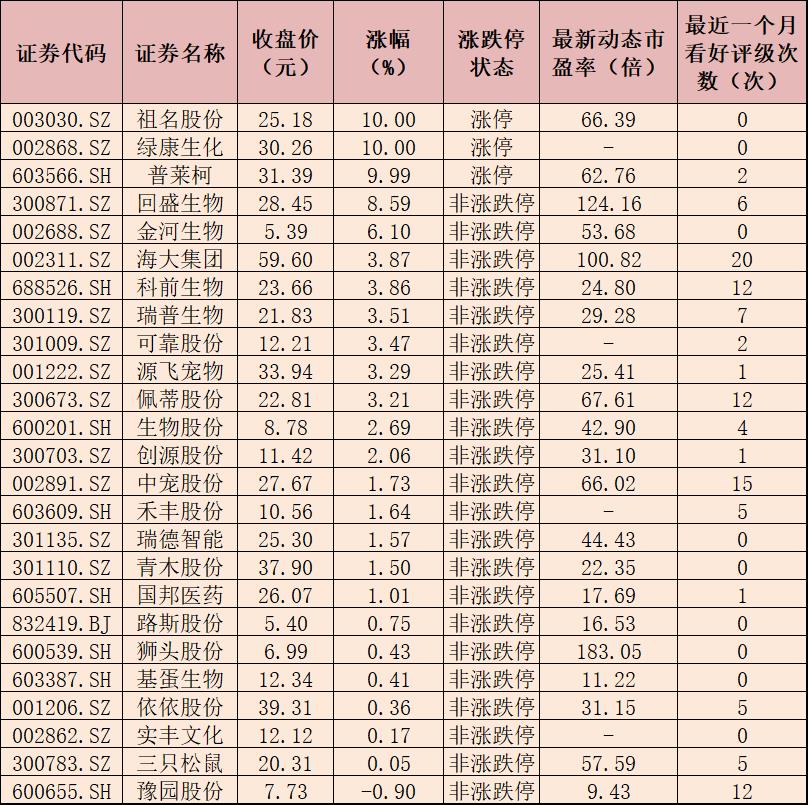 表:9月13日寵物經(jīng)濟(jì)板塊市場表現(xiàn)一覽