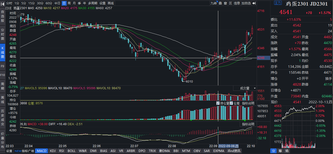廣州國邦資產(chǎn)管理有限公司董事總經(jīng)理周權(quán)慶告訴《證券日報》記者:“國慶節(jié)后,供給端受北方大風(fēng)降溫天氣影響,雞蛋物流運輸暫時不暢,市場中雞蛋供應(yīng)量少,導(dǎo)致雞蛋價格走高。”