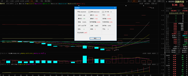 10月18日,國(guó)脈科技以9.36元封漲停板報(bào)收,漲幅達(dá)9.99%。該股自9月30日以來(lái),截至10月18日已連續(xù)8個(gè)交易日上漲,累計(jì)漲幅達(dá)95.00%。該股最新A股總市值達(dá)94.30億元,A股流通市值93.95億元。