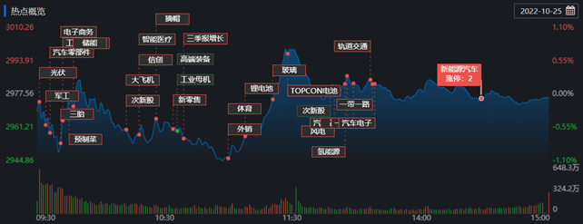 截至10月25日收盤,上證指數(shù)跌0.04%,收報2976.28點,深證成指跌0.51%,收報10639.82點,創(chuàng)業(yè)板指跌0.95%,收報2314.55點;滬深兩市合計成交額8028.9億元;北向資金凈買入28.45億元;A股中上漲個股為1853只,下跌個股2849只。