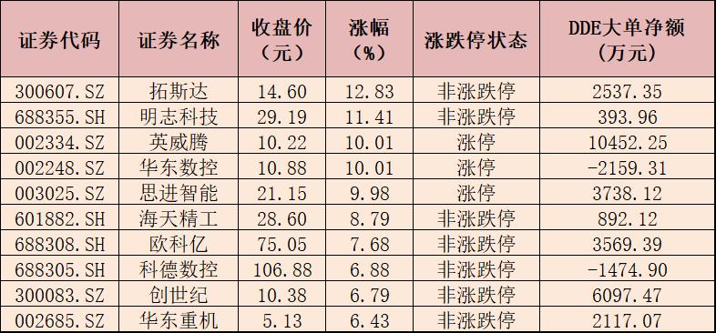 表:10月25日漲幅前十的工業(yè)母機(jī)概念股一覽