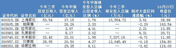 截至10月27日收盤,上述7家公司中,已經(jīng)有3家披露三季報,2家公司實現(xiàn)營業(yè)收入同比增長;另有1家公司披露了業(yè)績預(yù)喜的預(yù)告。貝泰妮業(yè)績尤其突出,前三季度實現(xiàn)營業(yè)收入37.05%及歸母凈利潤45.62%的同比增長。