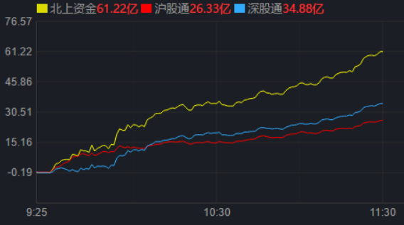 從資金面來看,11月4日上午,北向資金凈買入金額達(dá)61.22億元。