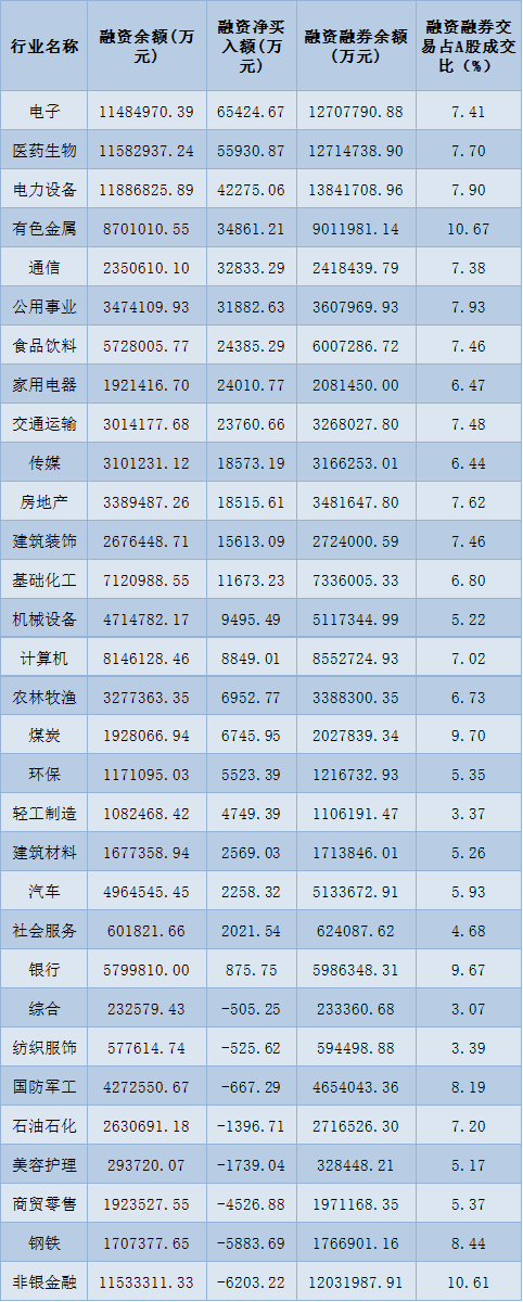 表:11月3日申萬一級(jí)行業(yè)兩融交易情況: