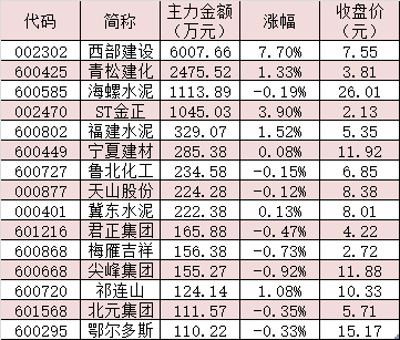 表:11月8日受到超百萬元主力資金追捧的水泥股