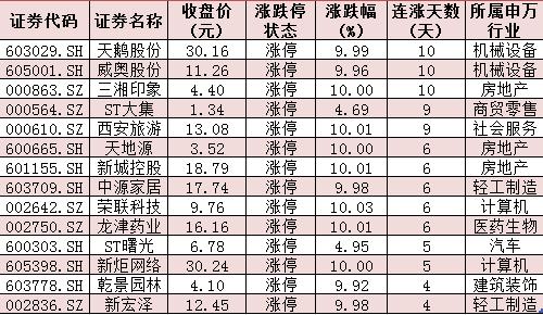 表:連續(xù)上漲4日且今日收盤漲停個股情況: