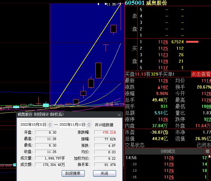 11月11日,熱門股威奧股份再度漲停,截至收盤,報(bào)11.26元,連續(xù)10個交易日實(shí)現(xiàn)上漲,累計(jì)漲幅達(dá)76.21%。
