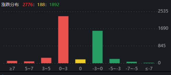 11月14日早盤,A股市場三大指數(shù)走勢分化。截至上午11:30,上證指數(shù)漲0.75%,報(bào)3110.42點(diǎn);深證成指和創(chuàng)業(yè)板指漲幅分別為0.66%和-0.51%;滬深兩市合計(jì)成交額6740.8億元??傮w來看,A股市場個股漲多跌少,有52只個股漲停,跌停個股5只。