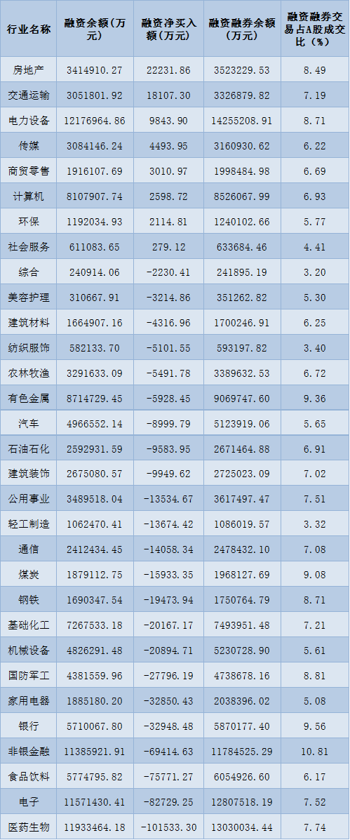 表:11月11日申萬一級行業(yè)兩融交易情況: