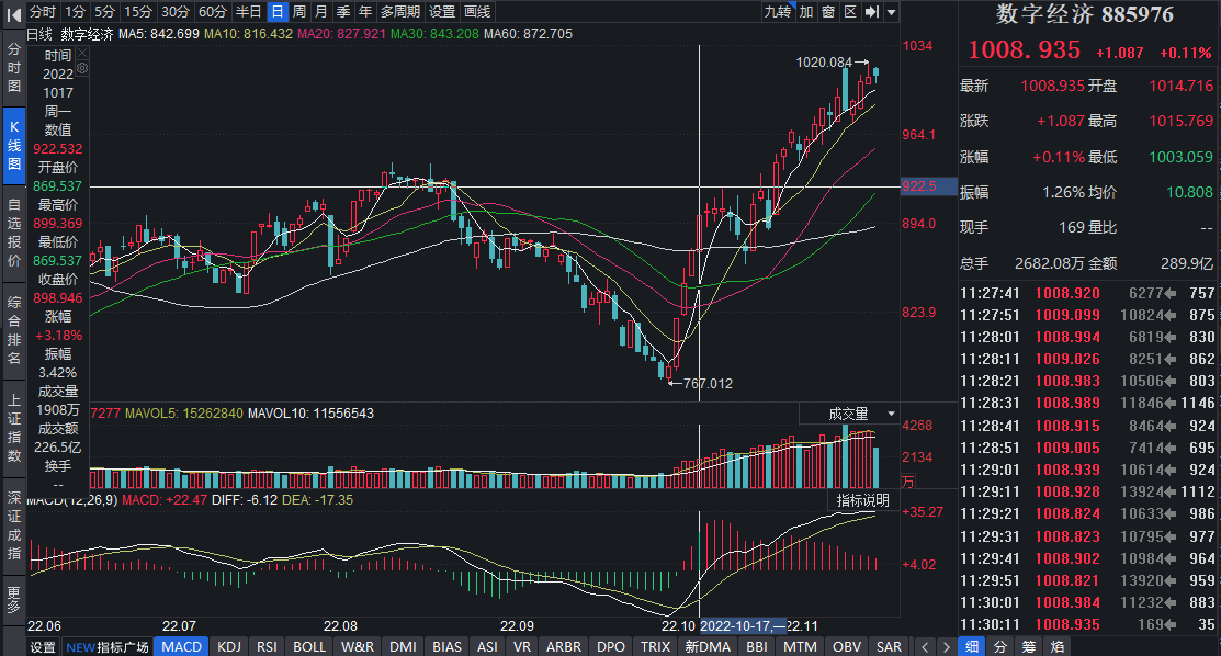數(shù)字經(jīng)濟(jì)概念板塊近期大幅上漲與資金面關(guān)系十分密切,大單資金正積極搶籌部分?jǐn)?shù)字經(jīng)濟(jì)概念板塊個(gè)股。11月1日至11月16日,該板塊共有28只個(gè)股共獲得14.71億元大單資金凈流入。其中,大單資金對(duì)深桑達(dá)A、科華數(shù)據(jù)、中科金財(cái)、軟通動(dòng)力的凈流入額均超過(guò)1億元。