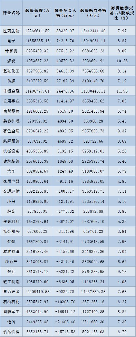 表:11月17日申萬一級行業(yè)兩融交易情況: