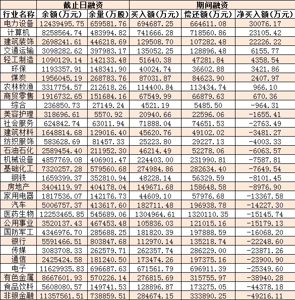 表:11月18日申萬一級行業(yè)兩融交易情況: