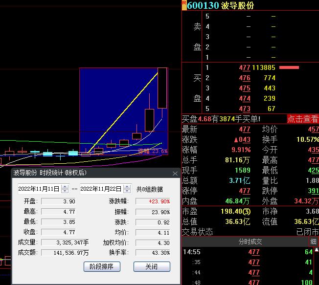 11月22日,波導(dǎo)股份沖至漲停,截至收盤(pán),報(bào)4.77元,連續(xù)8個(gè)交易日實(shí)現(xiàn)上漲,累計(jì)漲幅達(dá)23.9%。