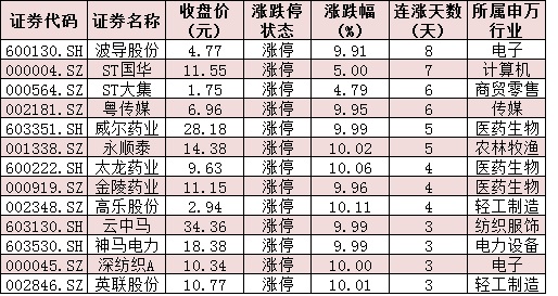 表:連續(xù)上漲3日且今日收盤(pán)漲停個(gè)股情況: