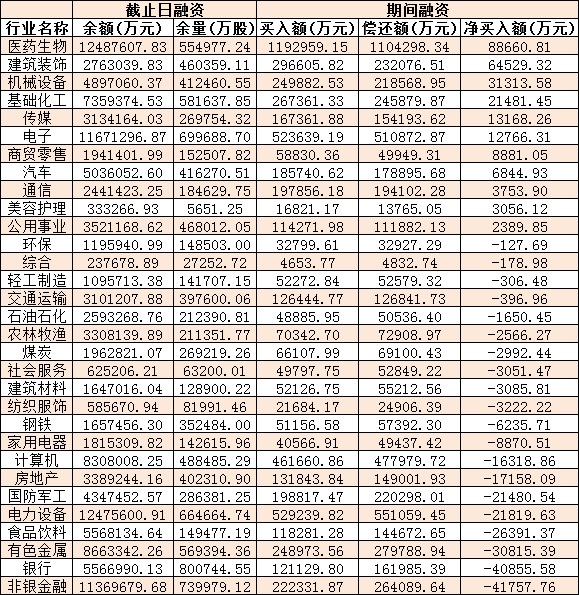表:11月22日申萬(wàn)一級(jí)行業(yè)兩融交易情況: