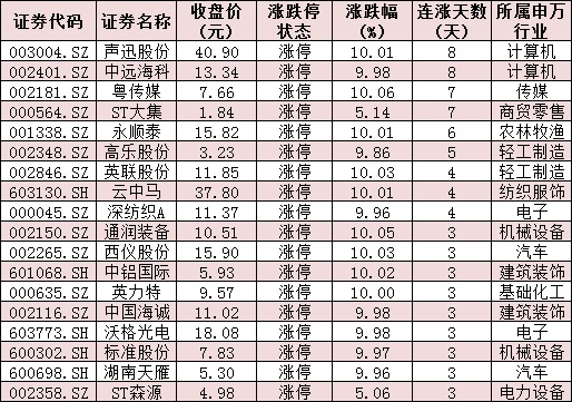表:連續(xù)上漲3日且今日收盤漲停個股情況: