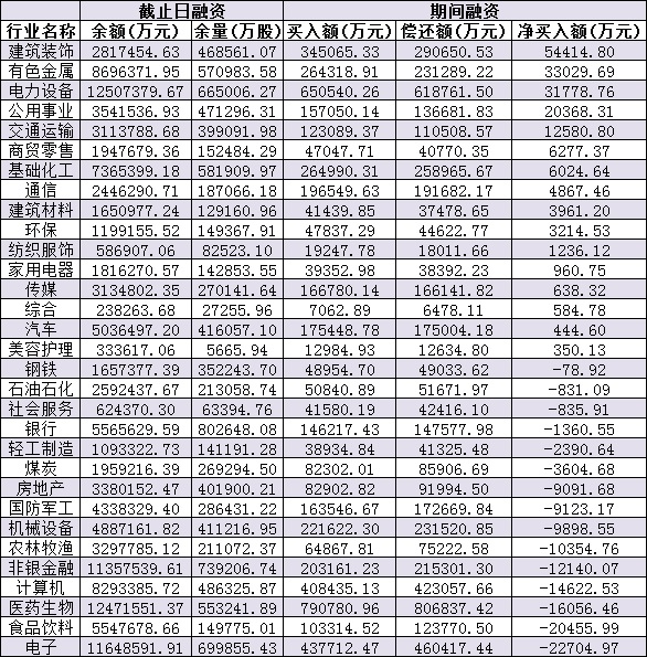 表:11月23日申萬一級行業(yè)兩融交易情況: