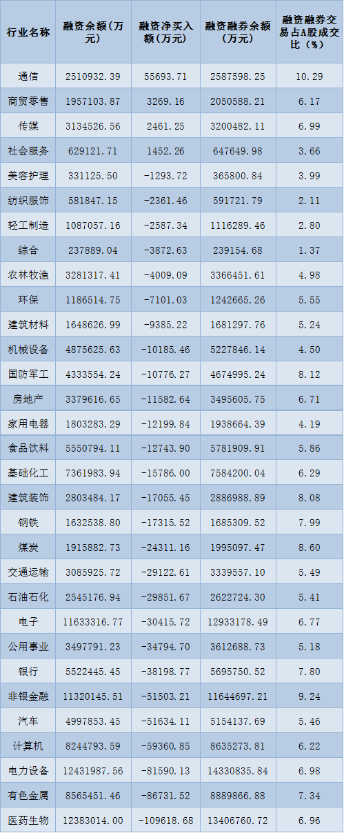 表:11月25日申萬一級行業(yè)兩融交易情況: