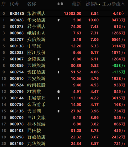 從早盤表現(xiàn)強(qiáng)勢的旅游酒店行業(yè)看,截至11月28日11:30,該行業(yè)交易中的34只個(gè)股有33只上漲,其中8只漲幅超5%。從資金流向看,該行業(yè)今天上午大單資金凈流入額達(dá)4.48億元,居行業(yè)第1位。