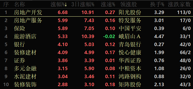 東方財富行業(yè)方面,截至11月29日11:30,86類行業(yè)中79類上漲,占比91.86%,其中,房地產(chǎn)開發(fā)行業(yè)漲幅居首,達6.68%,房地產(chǎn)服務(wù)(5.99%)、保險(5.89%)和旅游酒店(5.33%)等行業(yè)漲幅均超5%。光伏設(shè)備跌幅居首,達0.87%。
