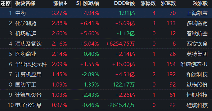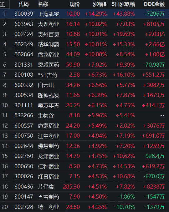 從早盤表現(xiàn)強勢的中藥行業(yè)看,截至12月12日11:30,該行業(yè)交易中的75只個股,有70只個股上漲,其中12只個股漲幅超5%。從資金流向看,該行業(yè)今天上午大單資金凈流出額達1.91億元。
