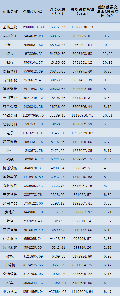 表:12月12日申萬一級行業(yè)兩融交易情況: