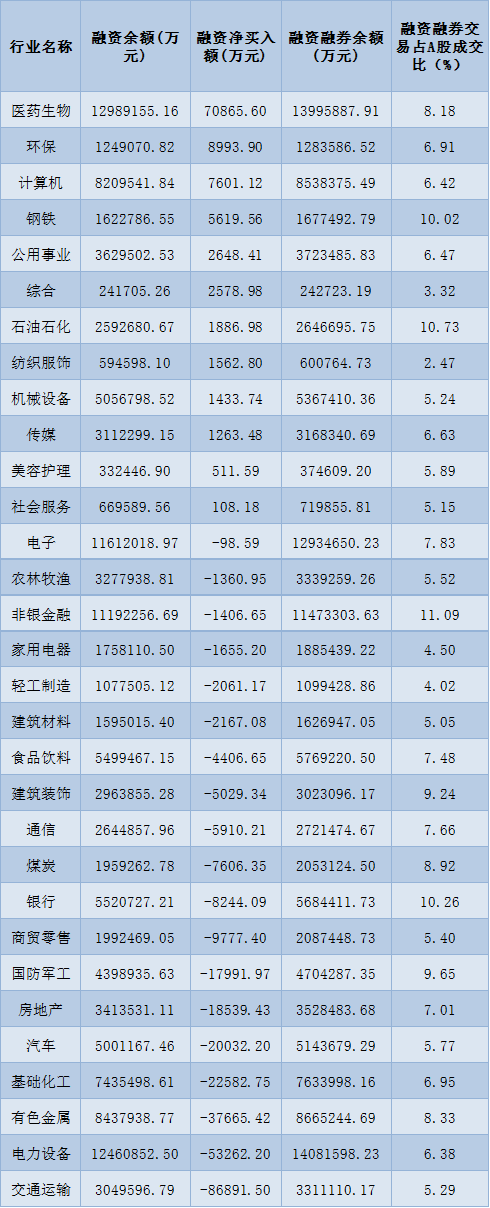 表:12月14日申萬(wàn)一級(jí)行業(yè)兩融交易情況: