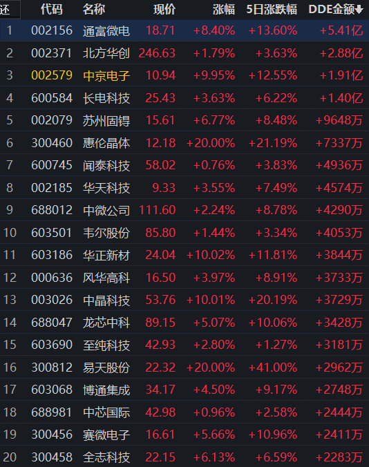 從早盤(pán)資金流向看,半導(dǎo)體及元件行業(yè)大單資金凈流入額達(dá)19.98億元,居首,此外,醫(yī)藥商業(yè)和計(jì)算機(jī)應(yīng)用大單資金凈流入額均超6億元。資金流入居首的半導(dǎo)體及元件行業(yè)交易中的173只個(gè)股,有150只上漲,其中20只漲幅超5%。