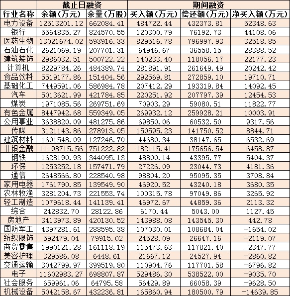 表:12月15日申萬一級行業(yè)兩融交易情況: