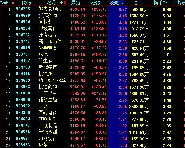 具體看,截至12月16日上午收盤,醫(yī)藥股表現(xiàn)搶眼,熊去氧膽酸(6.72%)、新冠藥物(4.45%)、原料藥(3.85%)等相關(guān)醫(yī)藥板塊漲幅居前。其中,廣生堂20CM漲停,新華制藥、眾生藥業(yè)、中國醫(yī)藥等多只醫(yī)藥股聯(lián)袂漲停。