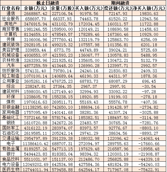 表:12月27日申萬一級行業(yè)兩融交易情況: