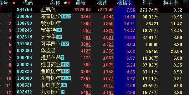 具體看,截至12月28日上午收盤,血氧儀板塊表現(xiàn)搶眼,漲幅達(dá)7.56%。其中,康泰醫(yī)學(xué)、愛朋醫(yī)療、寶萊特、奧佳華等概念股漲幅均在10%及以上。