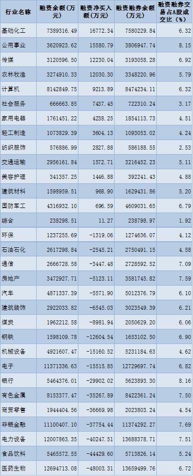 表:12月28日申萬一級行業(yè)兩融交易情況: