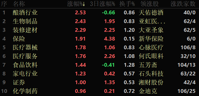 東方財富行業(yè)方面,截至1月13日11:30,86類行業(yè)中48類上漲,占比55.81%,其中,釀酒行業(yè)漲幅居首,達2.53%,此外,生物制品和裝修建材行業(yè)漲幅也超過2%。下跌方面,電源設(shè)備行業(yè)跌幅居首,達1.65%。