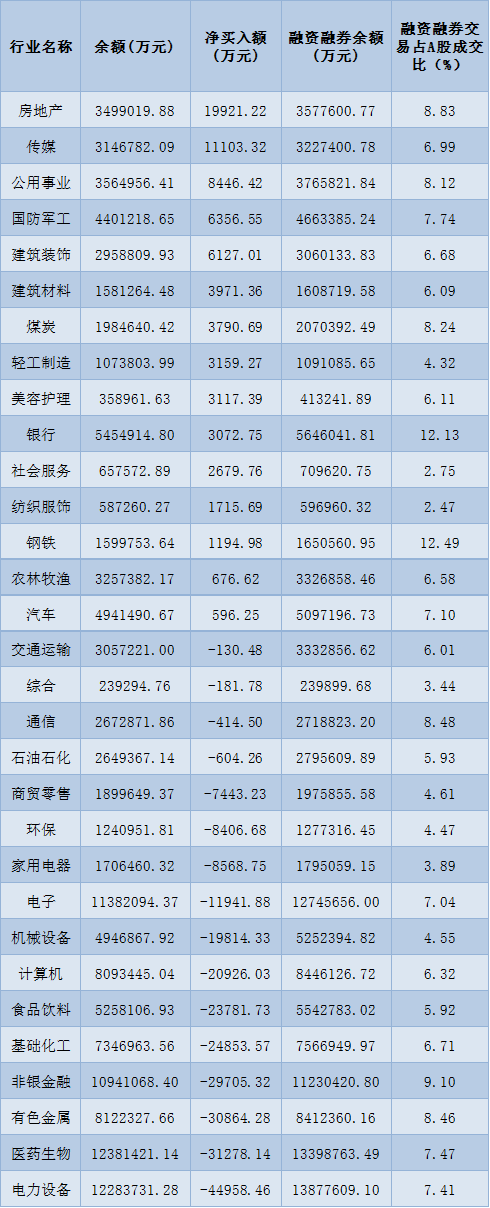 表:1月12日申萬一級行業(yè)兩融交易情況: