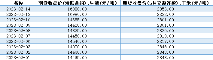表:玉米、生豬期貨主力合約本月以來價(jià)格走勢(shì)一覽