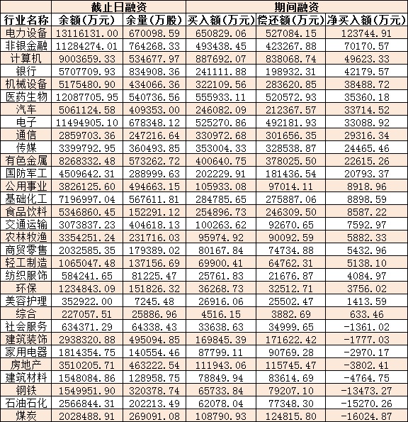 表:2月20日申萬一級行業(yè)兩融交易情況: