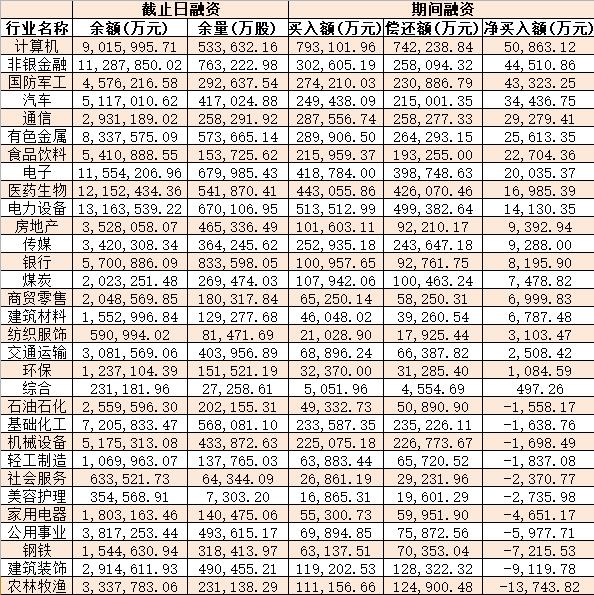 表:2月22日申萬(wàn)一級(jí)行業(yè)兩融交易情況: