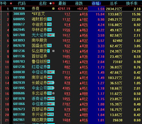 具體看,截至2月23日上午收盤,券商板塊漲幅居首達(dá)1.59%。其中,*ST吉艾漲幅近16%。