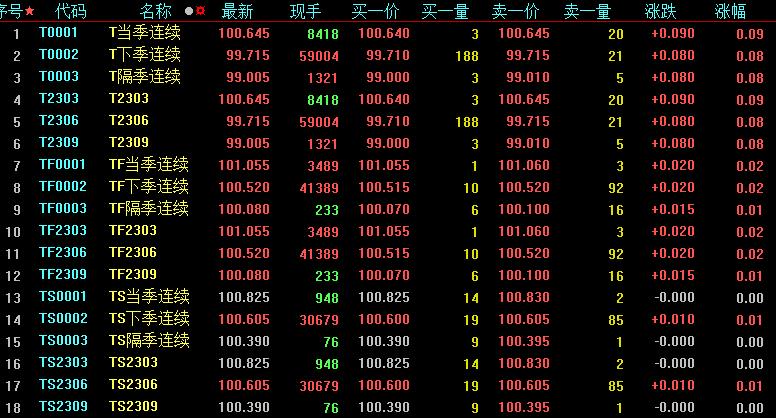周五,中金所國(guó)債期貨延續(xù)反彈。10年期主力合約T2306收漲0.08%,報(bào)99.715,全周仍下跌0.1%;2年期主力合約TF2306上漲0.02%,報(bào)100.52,周線下跌0.11%;2年期主力合約TS2306上漲0.01%,報(bào)100.605,全周下跌0.07%。萬聯(lián)證券分析認(rèn)為,市場(chǎng)的預(yù)期可能正在開始減弱,債市目前并不適合過分看空,隨著后期數(shù)據(jù)的逐步明朗和配置盤配置壓力的上升,債市有可能在10年國(guó)債達(dá)到3%附近后出現(xiàn)下行。