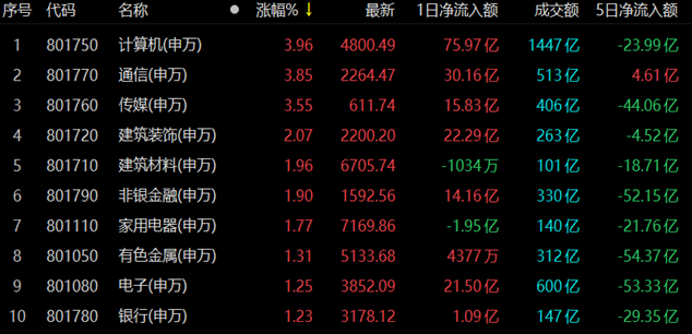 今日,A股三大指數(shù)震蕩上行,量能明顯增長(zhǎng),北向資金凈買入,計(jì)算機(jī)等4類申萬一級(jí)行業(yè)漲幅超2%。業(yè)內(nèi)人士表示,短線多頭擁有無畏的做多底氣,有利于后續(xù)行情的演繹。