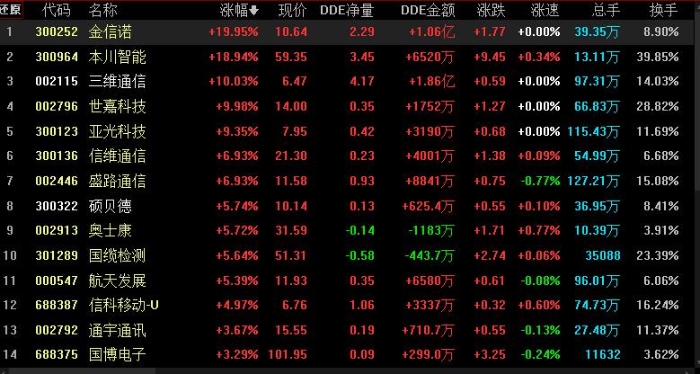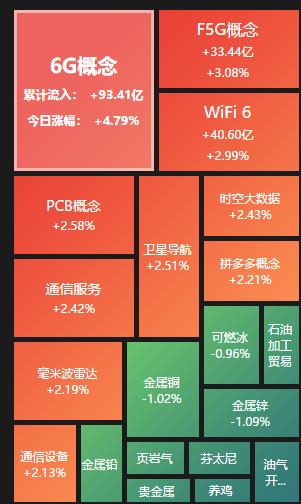 具體來看,截至3月8日上午收盤,6G概念板塊再度飆升,漲幅居首達4.79%。其中,金信諾、本川智能、三維通信等概念股漲幅均超10%。