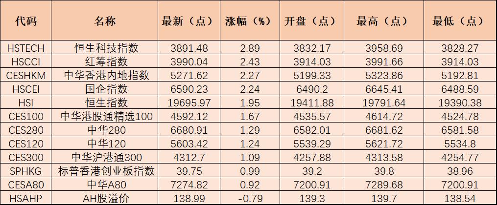 表:3月13日港股重要指數(shù)表現(xiàn)一覽