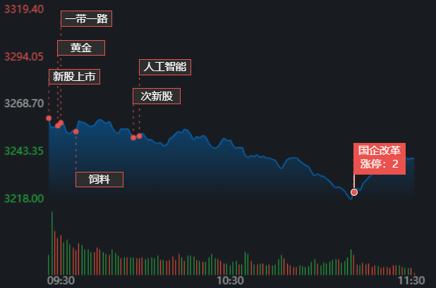 3月14日早盤,A股三大指數(shù)震蕩回落。截至上午11:30,上證指數(shù)跌0.88%,報(bào)3239.88點(diǎn);深證成指和創(chuàng)業(yè)板指跌幅分別為1.16%和1.26%;滬深兩市成交額合計(jì)5978.8億元,較前一交易日增長(zhǎng)16.54%??傮w來看,A股市場(chǎng)個(gè)股漲少跌多,漲跌停方面,有18只個(gè)股漲停,跌停股6只。