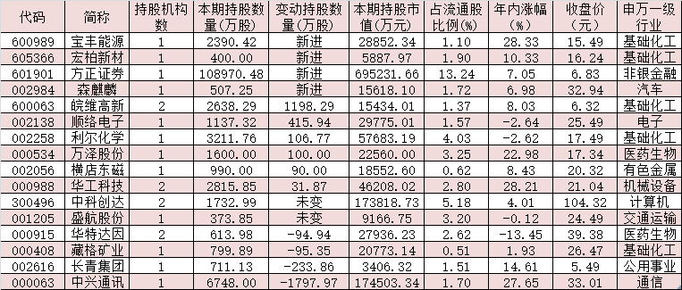 表:去年四季度獲社保基金持倉(cāng)的公司