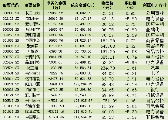 表:今日滬、深股通前十大成交活躍股交易情況: