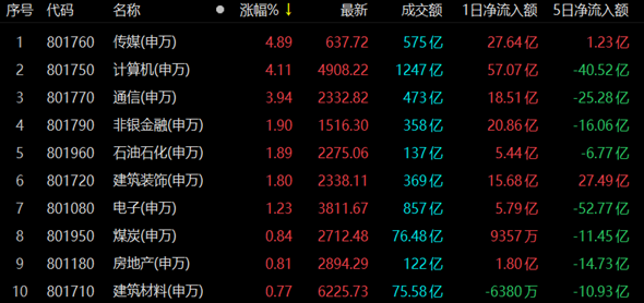 3月17日,行業(yè)漲多跌少。從31類(lèi)申萬(wàn)一級(jí)行業(yè)看,有25類(lèi)行業(yè)上漲,占比80.65%,6類(lèi)行業(yè)下跌。上漲方面,傳媒行業(yè)居首,漲幅達(dá)4.89%,計(jì)算機(jī)行業(yè)漲幅也超4%。下跌方面,醫(yī)藥生物居首,跌幅為1.56%,緊隨其后的是美容護(hù)理和食品飲料行業(yè),跌幅均超1%。