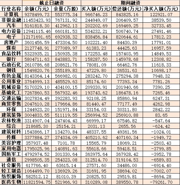 表:3月21日申萬一級(jí)行業(yè)兩融交易情況: