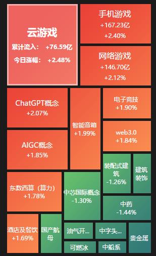 熱點(diǎn)方面,截至3月24日上午收盤,云游戲、網(wǎng)絡(luò)游戲等板塊漲幅居前。另外,貴金屬、中船系等行業(yè)跌幅居前。